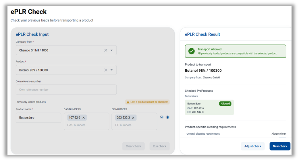 - The first version of the ePLR Check can be used by both industrial companies and logistics service providers to verify previous load restrictions and cleaning requirements.