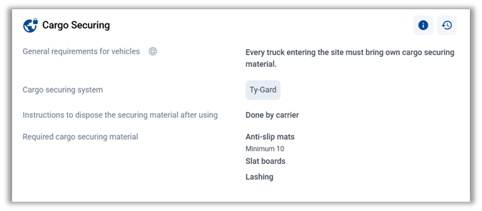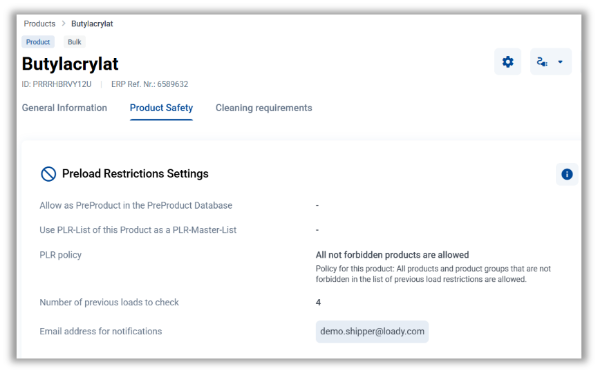 - Users have access to a convenient verification interface that allows them to check previous load restrictions for the product to be transported by comparing the last loads with the requirements defined by the shipper.
