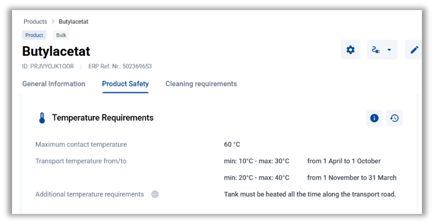 - New submodule for temperature requirements at the company product level: Temperature requirements that are independent of the loading point (e.g. contact temperature, transport temperature, protection against frost) can bemanaged centrally at the company product level